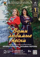 В исполнении заслуженных артисток Карелии, солисток ансамбля «Кантеле» Ирины Поповой и Татьяны Перонь прозвучат романсы, песни советских и современных композиторов из популярных художественных фильмов.