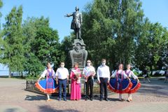 В проведении почётной миссии Владимиру Любарскому, Главе Петрозаводского городского округа, и Александру Ханцевичу, и.о.председателя Петросовета, ассистировали артистки ансамбля «Кантеле».