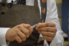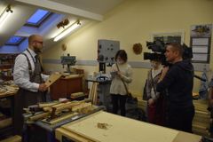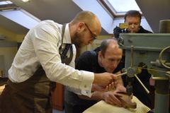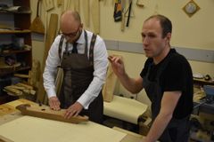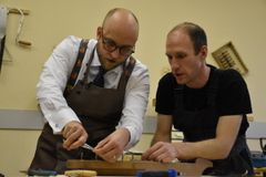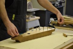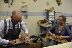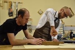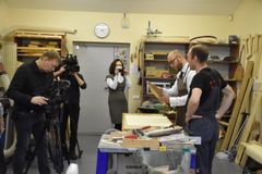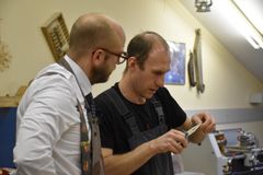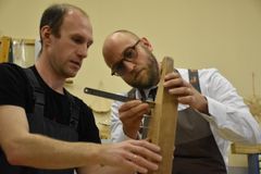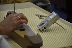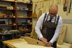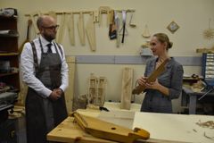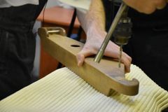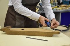 Сверление отверстий под колки, их установка и натягивание струн – эти несложные, но одновременно требующие определённой сноровки действия выполнял Йоханнес Пуукки, консул Петрозаводского отделения Генконсульства Финляндии в Санкт-Петербурге, на заключительном занятии по изготовлению 5-струнного кантеле.