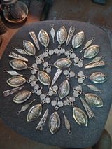 160 саппели (накладки) на женские головные уборы, полтора десятка фибул и 8 полных комплектов подвесов - столько изделий изготовлено в мастерской Йоргена Никлассона в сотрудничестве с мастером по изготовлению украшений Алексеем Пыряковым.