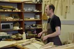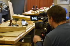 В мастерской по изготовлению музыкальных инструментов ансамбля «Кантеле» побывали Марина Бедорфас и Владимир Волотовский (съёмочная группа телеканала ОТР).